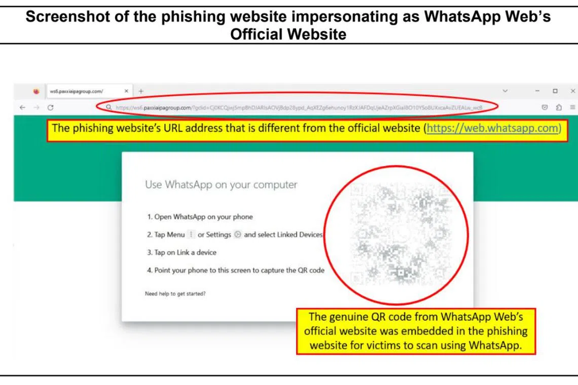 When victims scanned the QR code on the phishing website with their mobile phones, the page became unresponsive and scammers gained remote access to their WhatsApp accounts.