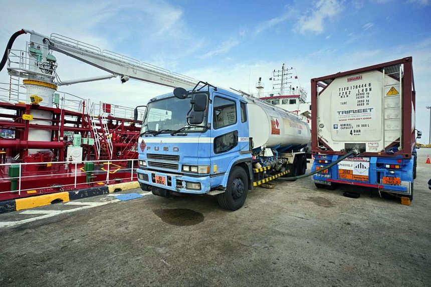 Alpha Biofuels supplies biodiesel, converted from cooking oil collected from food manufacturers, food and beverage businesses and households around the island, to the Singapore-registered bunkering vessel Marlin Tiga, before it goes to the receiving vessel Frontier Jacaranda.