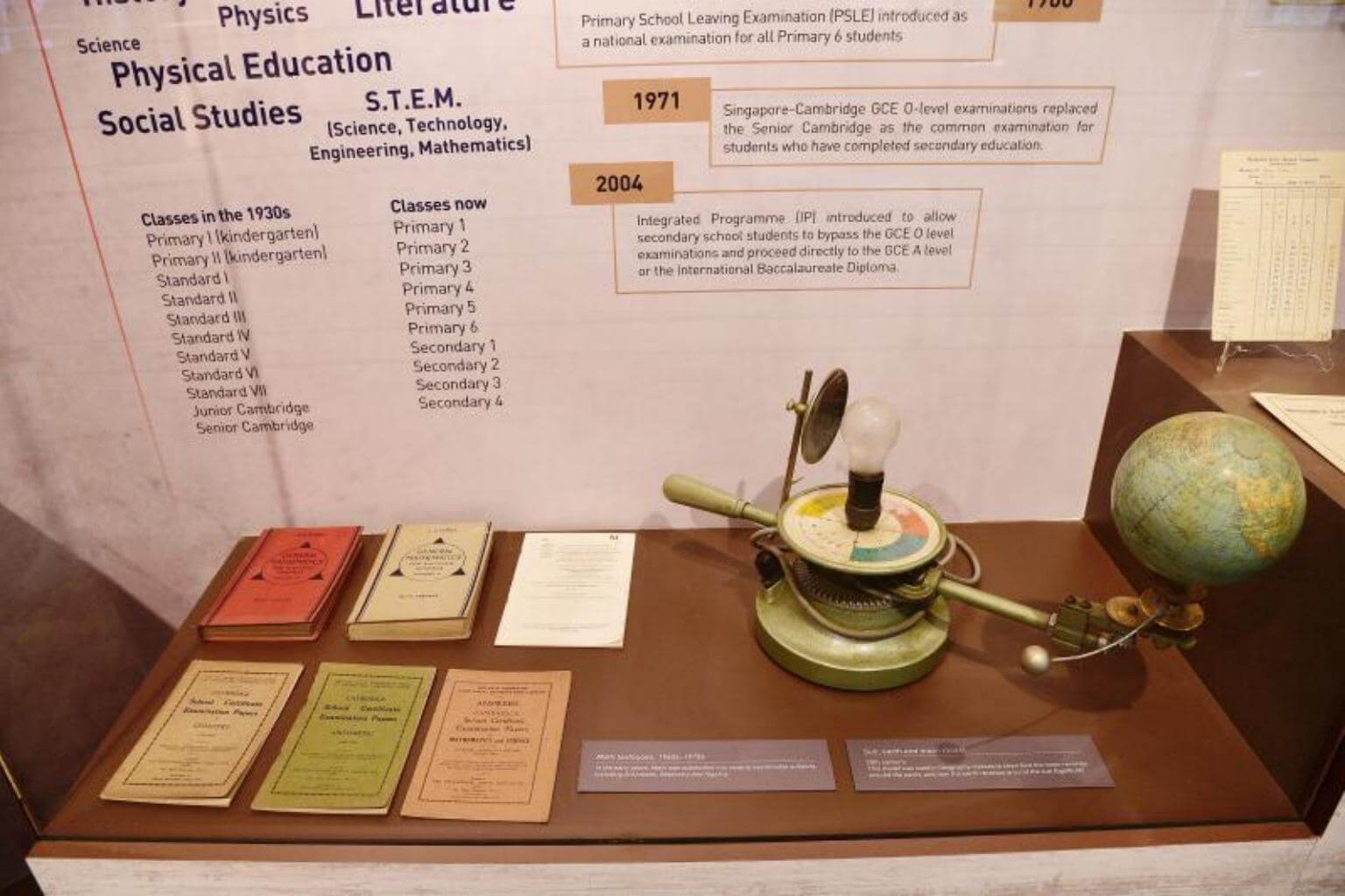 Mathematics textbooks from the 1960s to 1970s and a model of the sun, earth and the moon used for geography class are displayed at the official opening of the newly-renovated Methodist Girls School Heritage Centre.