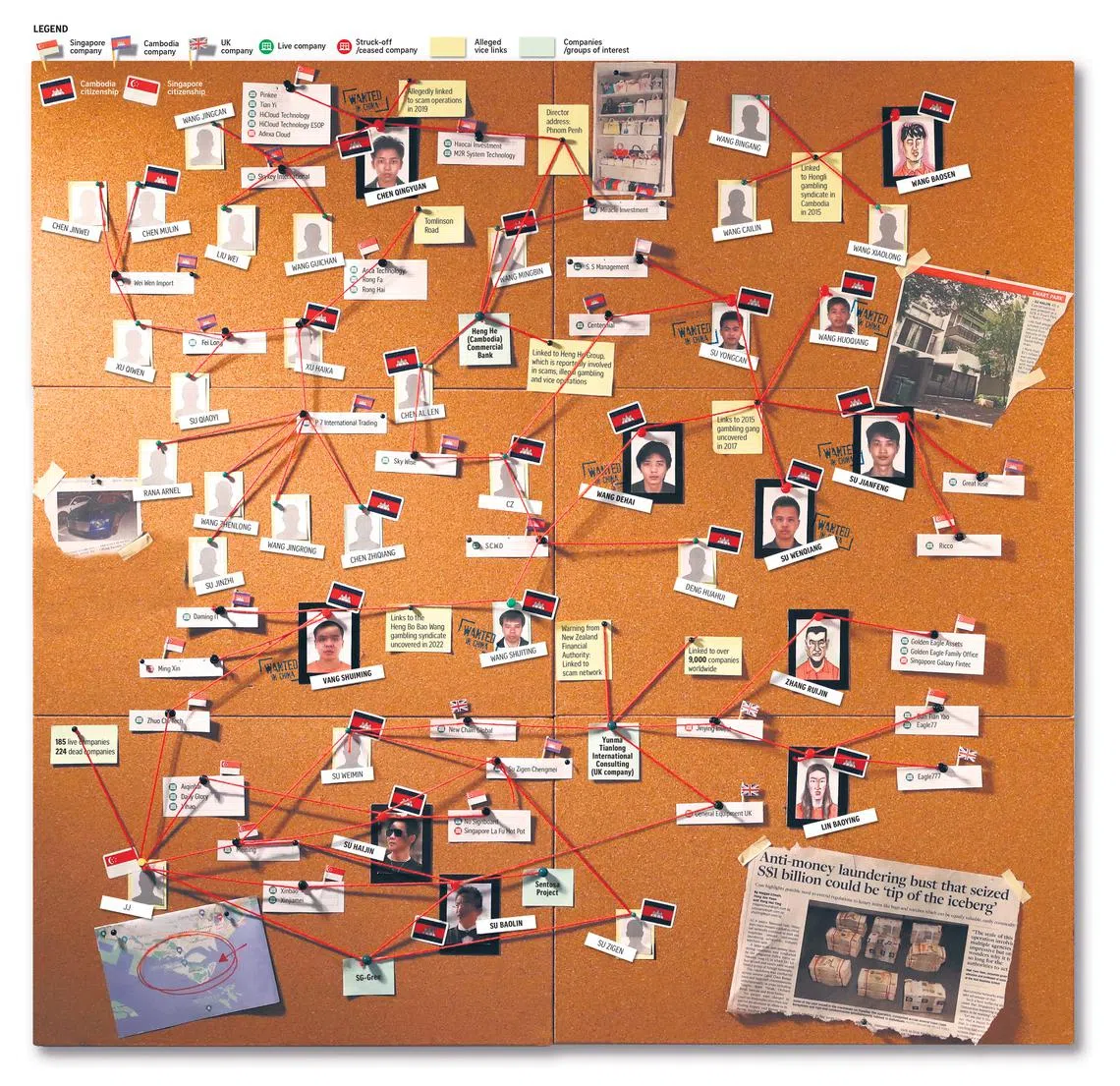 He is also linked to at least two Cambodian companies and five companies in Singapore.