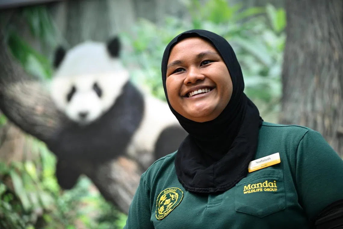 Keeper Norfaizah Abdul Aziz has been caring for the pandas for close to eight years.