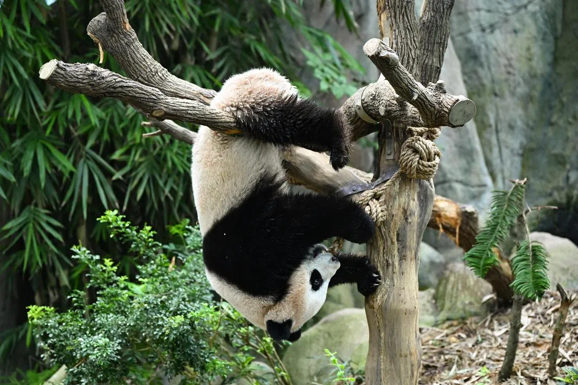 “It is very funny to see his ‘acrobatic show’. We never trained him to hang upside down, but he does it on his own,” said the 30-year-old, who has been taking care of the giant pandas since 2015.