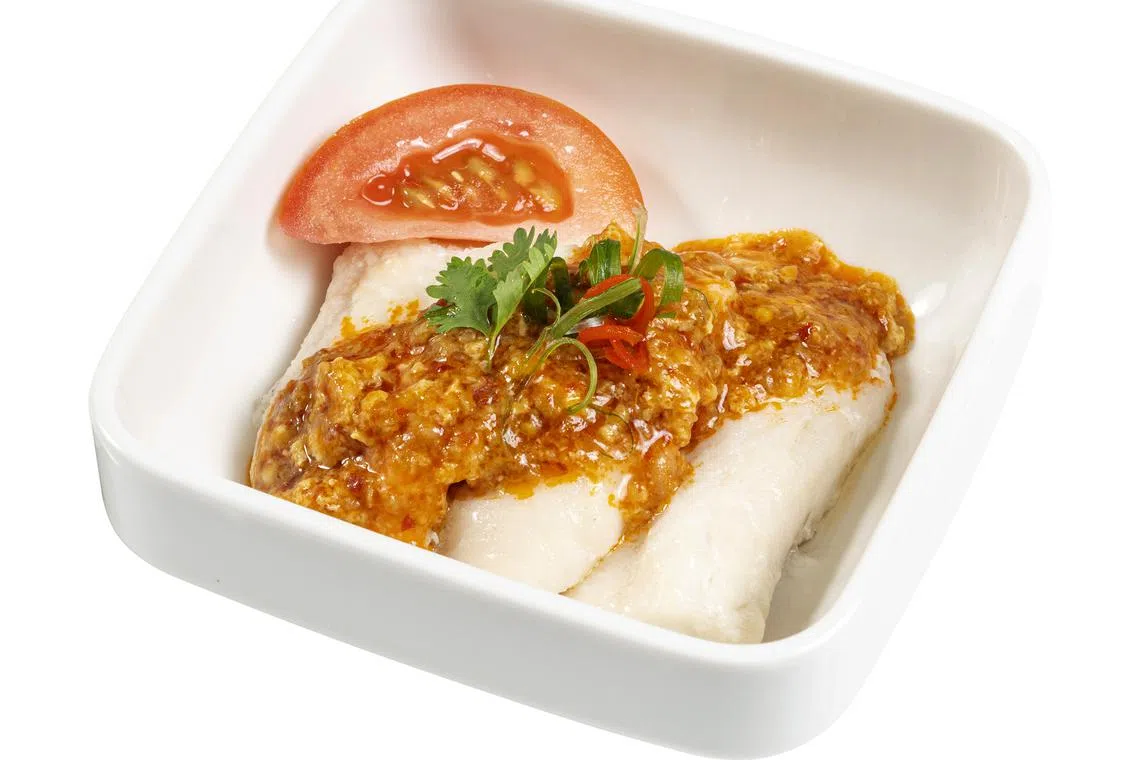 Steamed Fish with Jumbo Seafood chilli crab sauce served at the Singapore General Hospital.