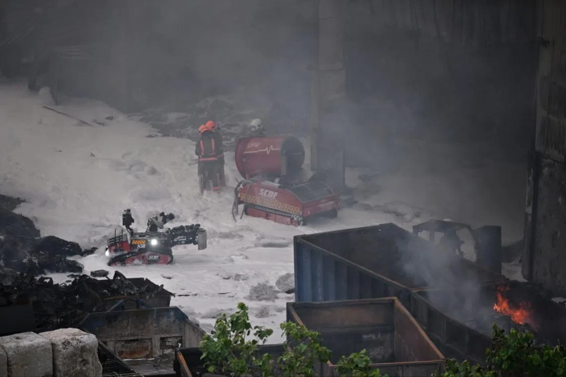 SCDF, which first posted about the incident at around noon, said the fire was “well alight” when it arrived and involved waste materials in a warehouse measuring about 50m by 50m.