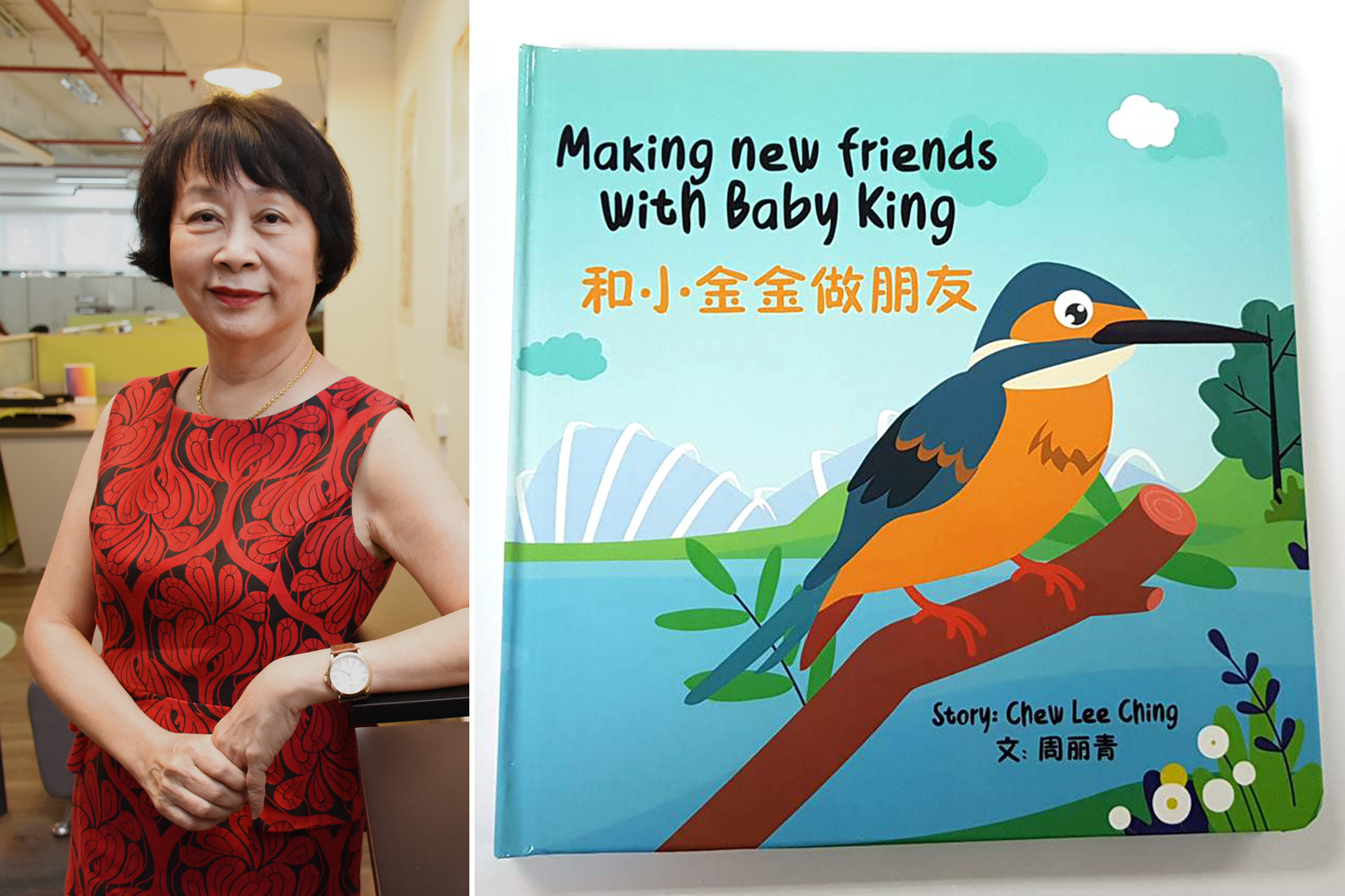 Set in Singapore to give children aged one to four a sense of familiarity, Making New Friends With Baby King - by Ms Chew Lee Ching (left) - is about a kingfisher that lives in Gardens by the Bay and is friends with the other animals there.