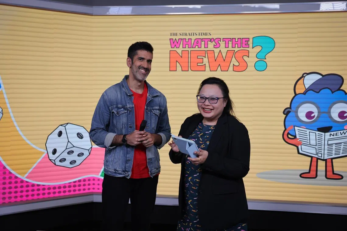 What’s The News? host Rishi Budhrani (left) with ST Schools editor Serene Luo.