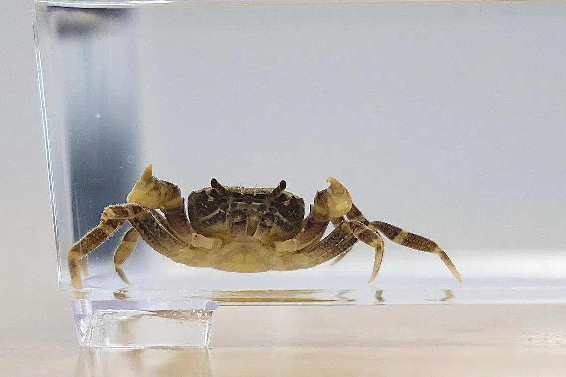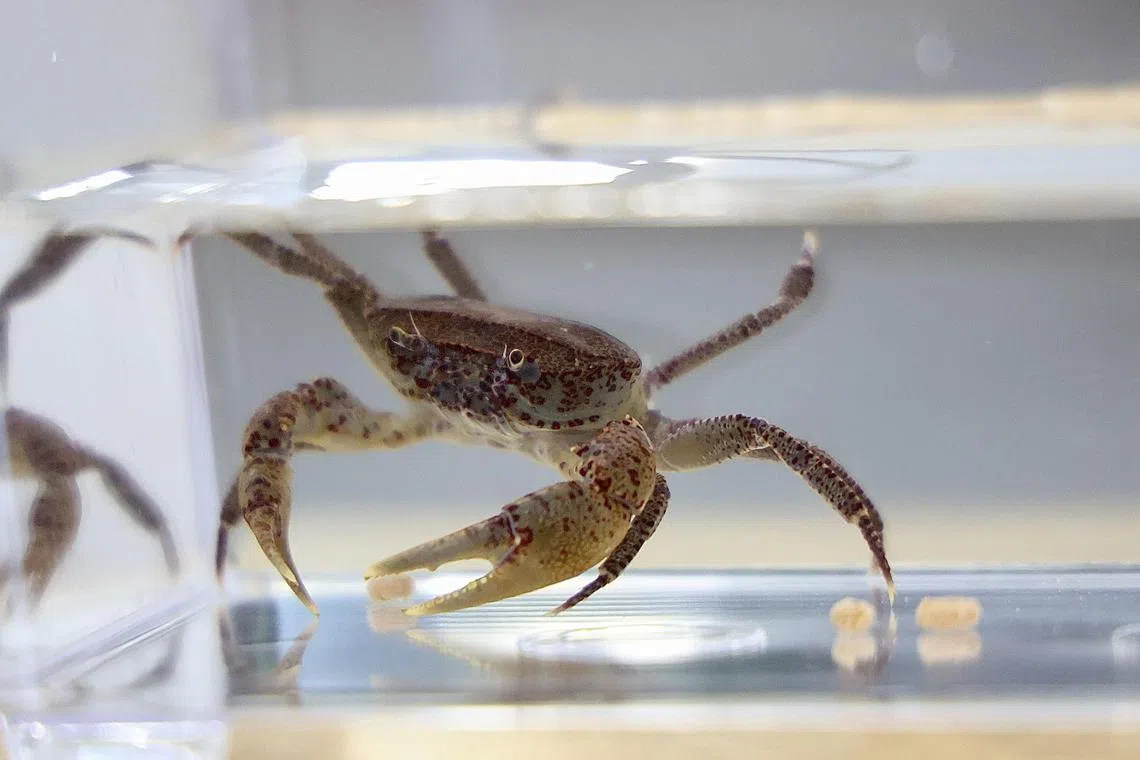 The Johnson’s freshwater crab, listed by NParks as vulnerable, was bred in captivity, and about 100 were released into the wild in 2023.