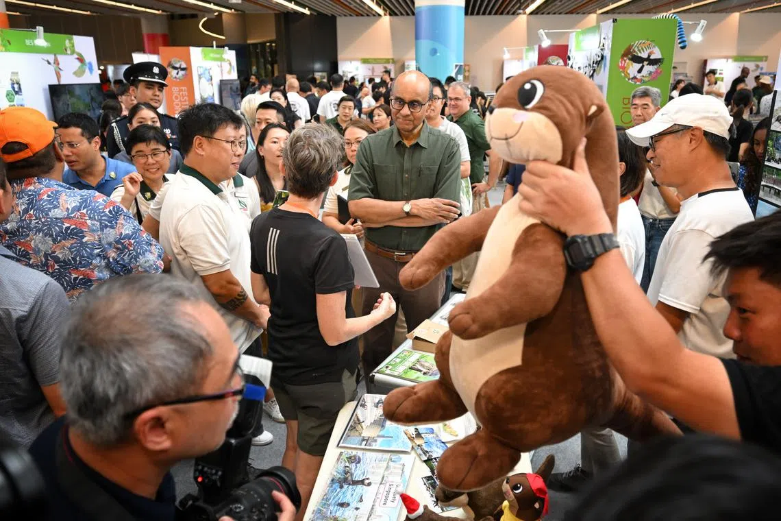 Mr Tharman, hosted by National Development Minister Desmond Lee, toured the festival ground at One Punggol, where 30 nature organisations had set up booths to showcase local wildlife conservation efforts.