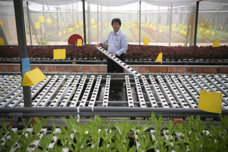 Mr Joseph Phua made the switch from pig farming in the 1980s to vegetable farming, and grows pesticide-free crops in greenhouses at his farm, Orchidville, in Sungei Tengah.