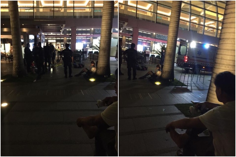 Photos of the accident, taken by an ST reader, show a crowd gathered on a footpath outside The Shoppes at Marina Bay Sands, near the waterfront.