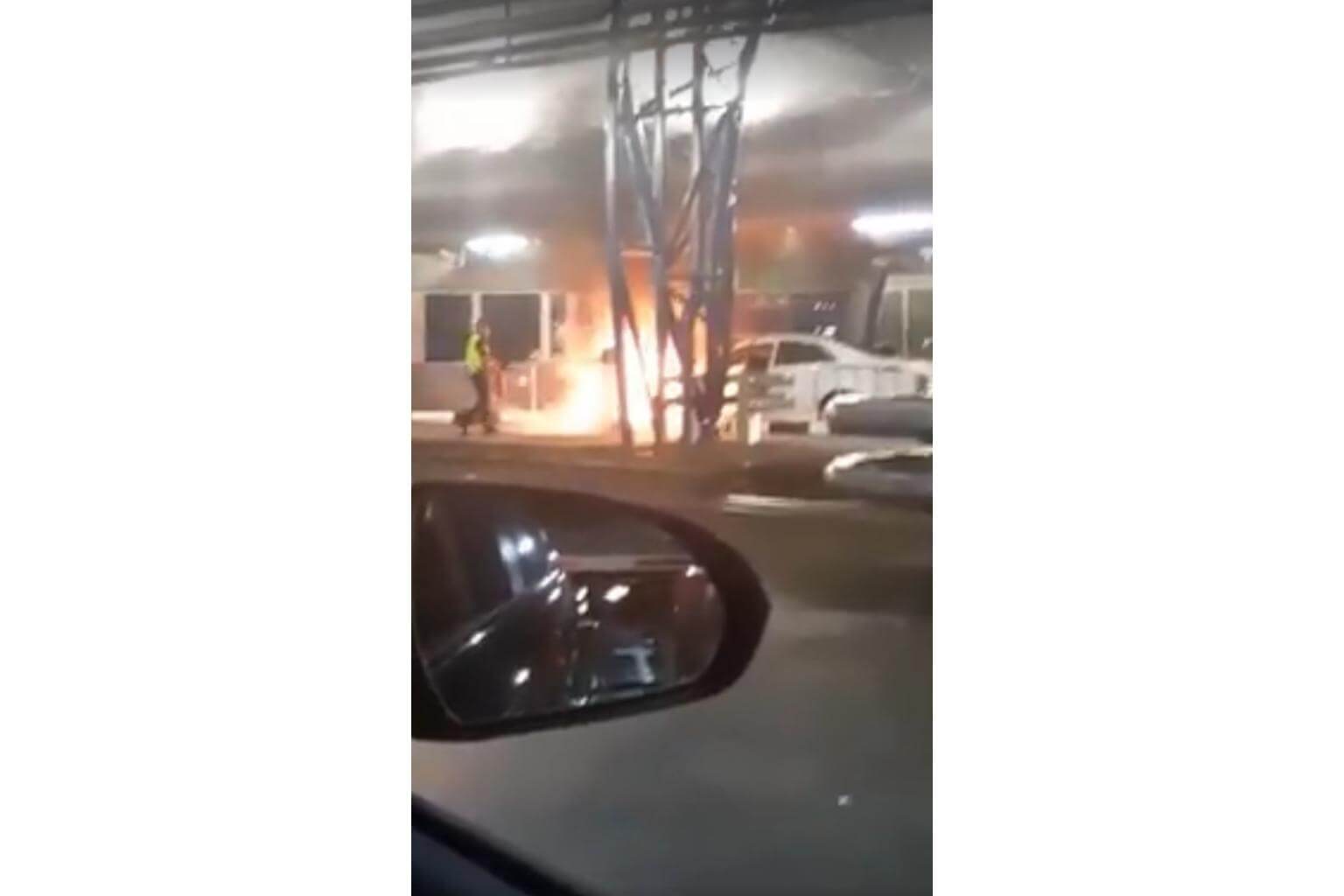 A video of the incident was shared widely online and shows huge orange flames coming from the car near the immigration clearance counters.