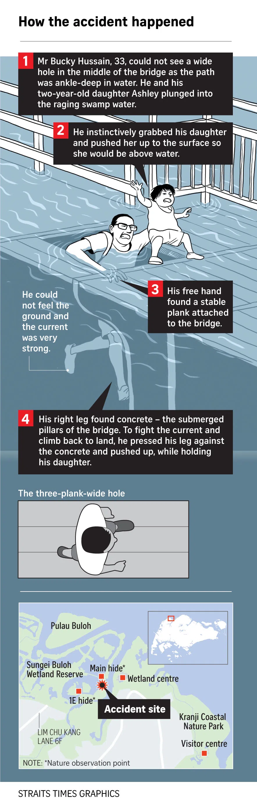 Bridge at Sungei Buloh Wetland Reserve reopens after man, daughter fell through hole into raging waters