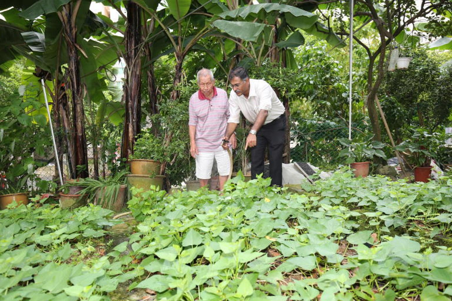 Bukit Batok MP Murali Pillai visited Mr Low Hai Ng, 98, in his community garden at Bukit Batok Zone 8 Block 219.
