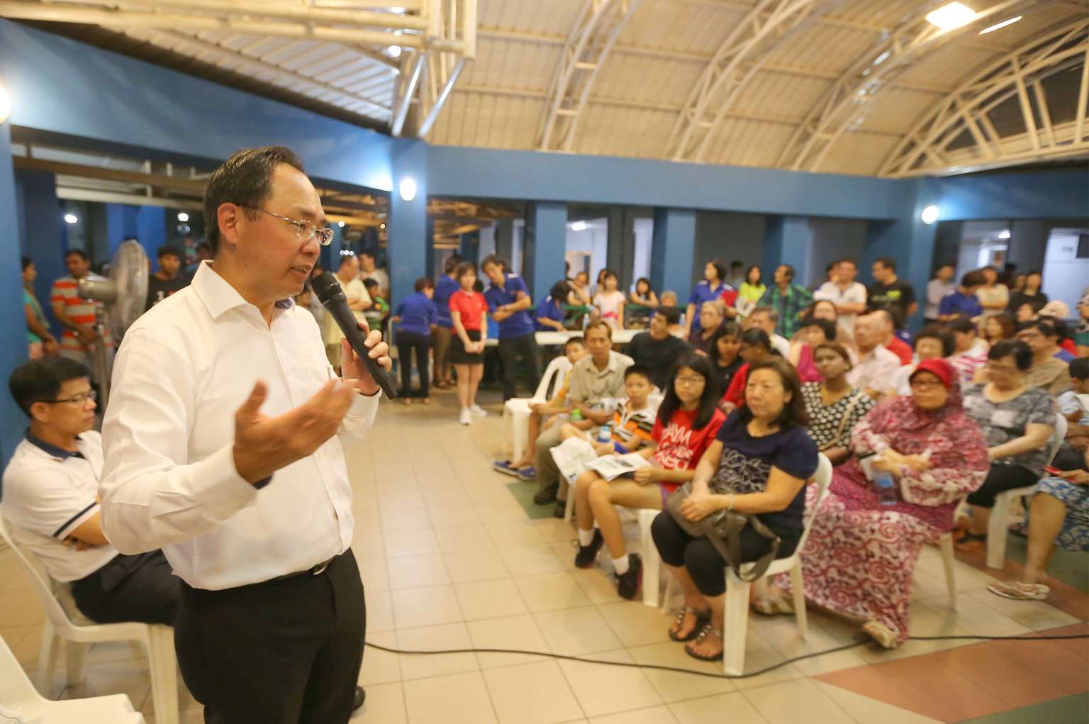 Mr Liang Eng Hwa talking to residents living in the Segar area in Bukit Panjang and provide updates and hear feedback from residents on April 19, 2017.