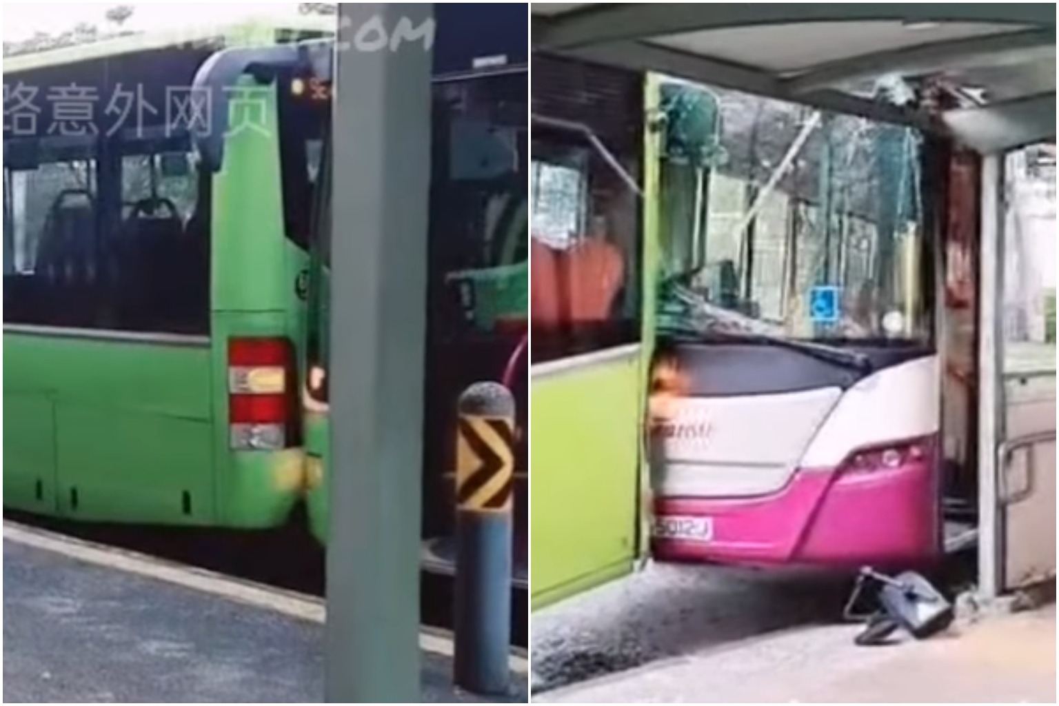 In a video posted on the Singapore Bus Drivers Community Facebook page, three empty SBS Transit buses can be seen to have collided into each other at a bus stop. A side mirror is seen on the ground next to the last bus.