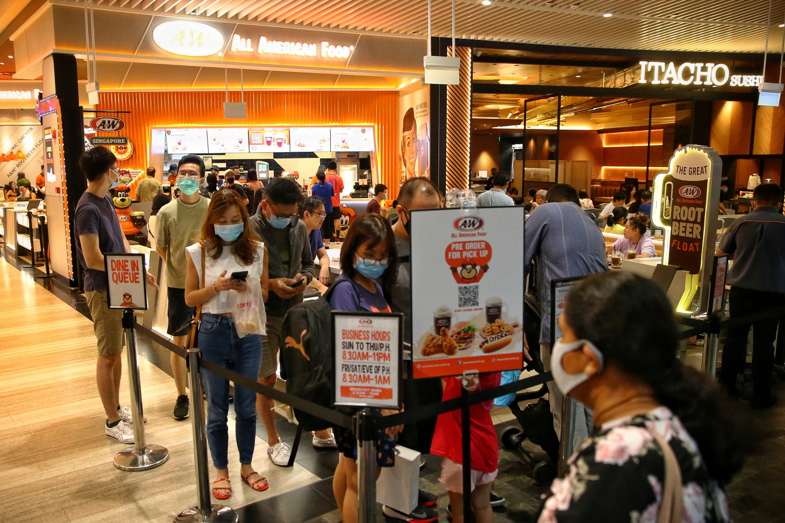 People queue for A&W in Jewel Changi Airport on July 31, 2022.