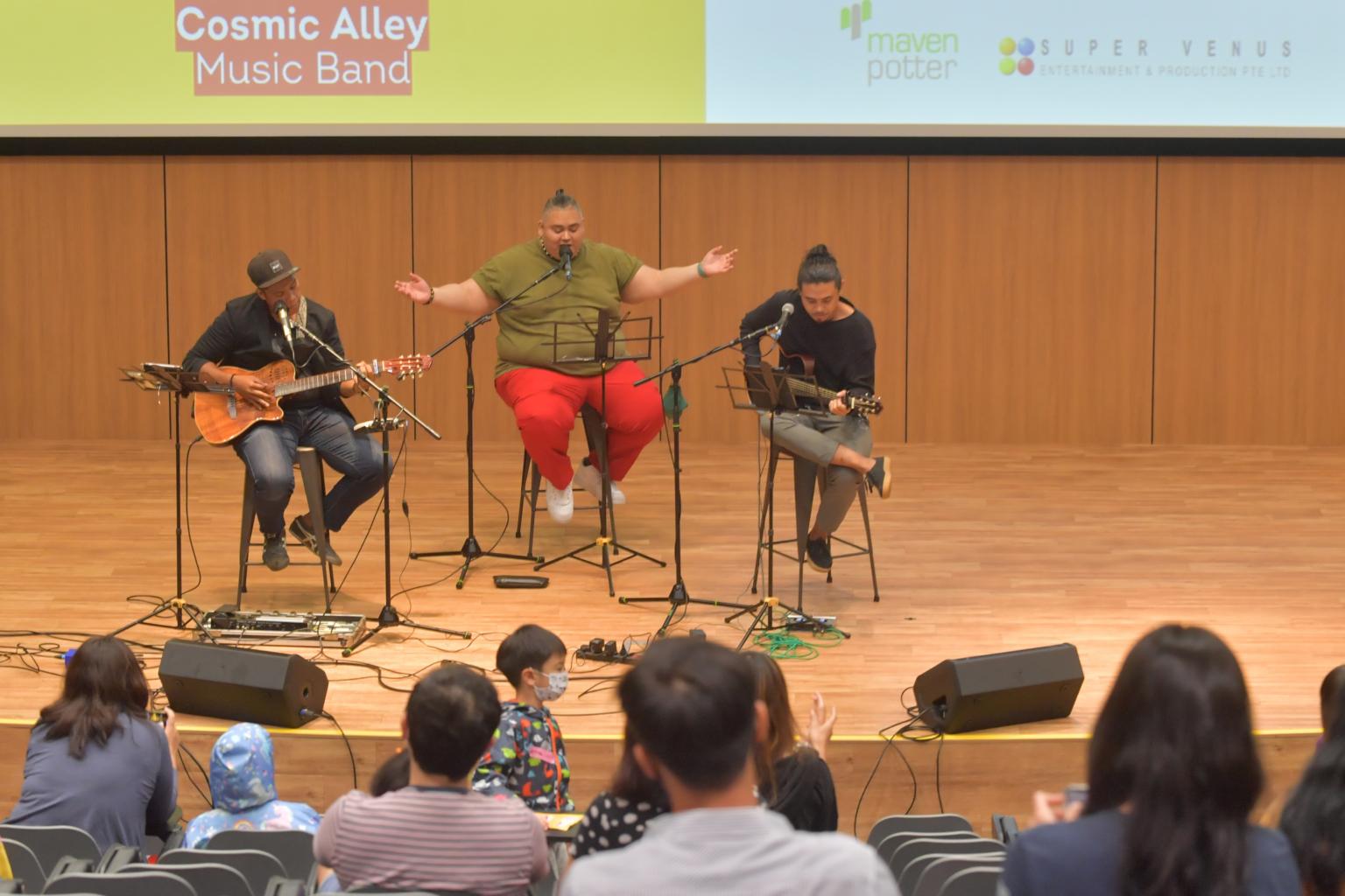 Music band Cosmic Alley performing at the Buskers' Festival at the PSB Academy in Marina Square on April 2, 2022.