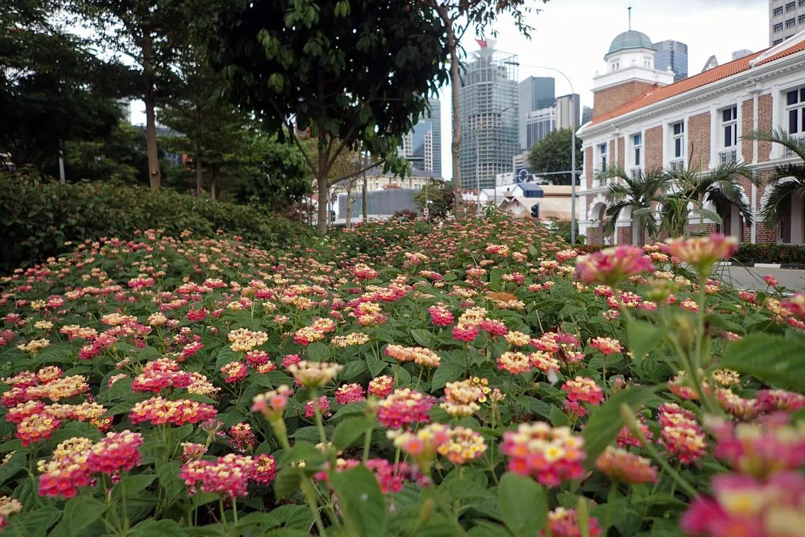 The vibrant pinks and yellows of the Lantana in Neil Road.