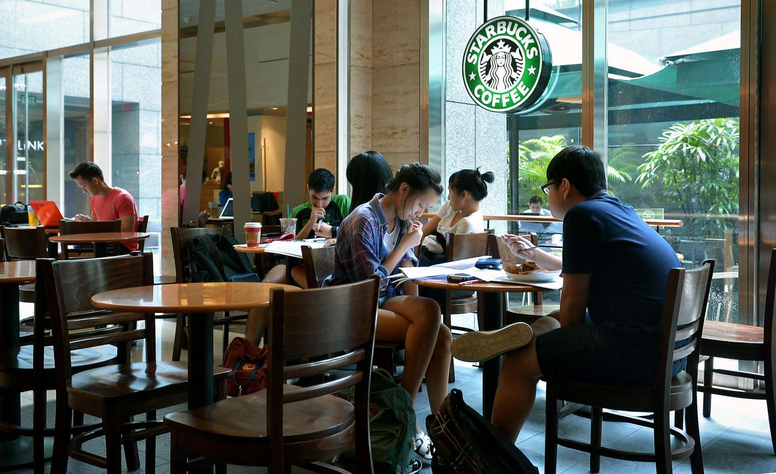 Students studying at a Starbucks outlet in City Link Mall.