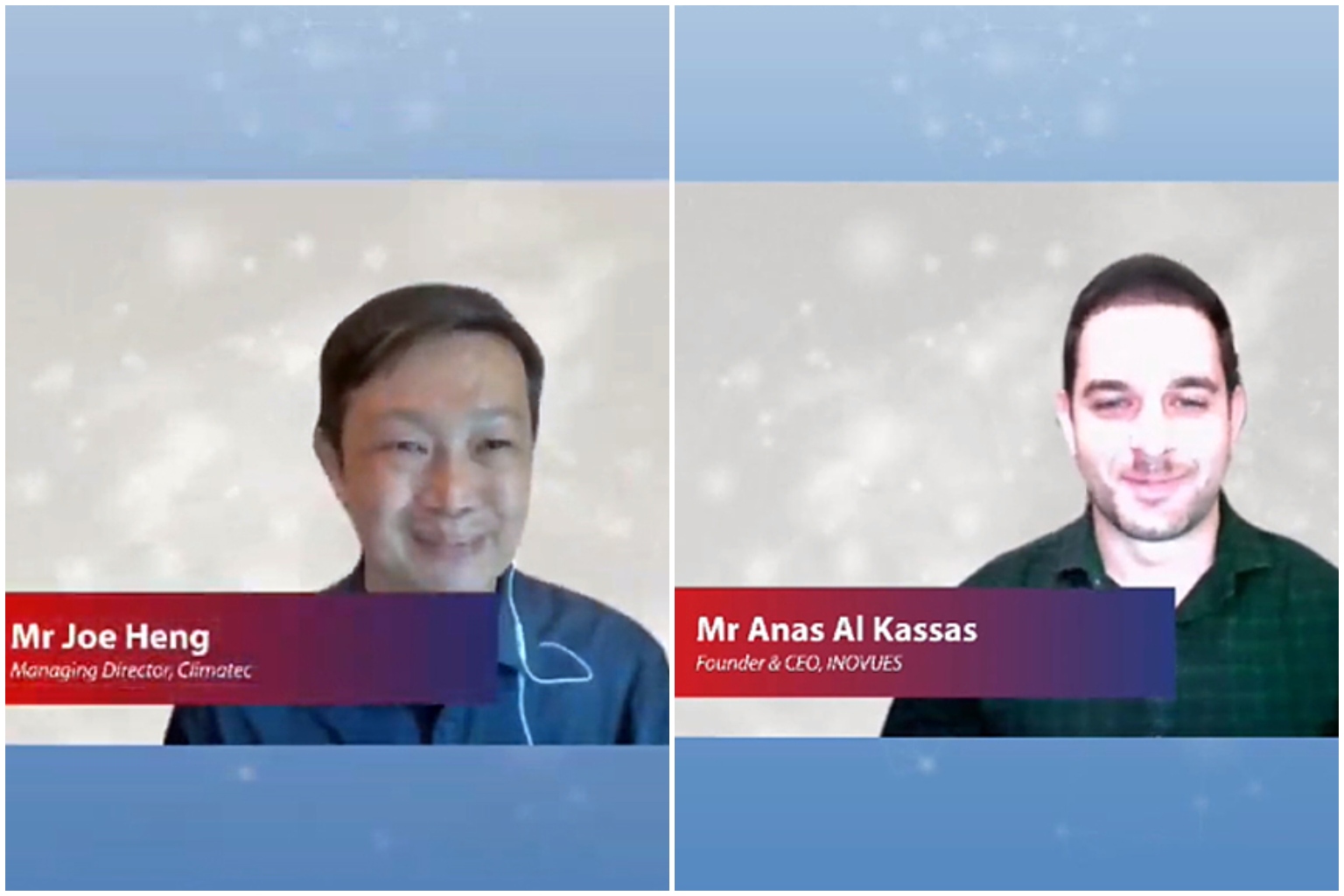 Mr Joe Heng's Climatech clinched the most innovative award at the CapitaLand Sustainability X Challenge. Its innovation treats cooling tower water without using chemicals or power. Mr Anas Al Kassas' Inovues bagged the high impact award. Its insulating glass technology reduces heat gain inside a building.