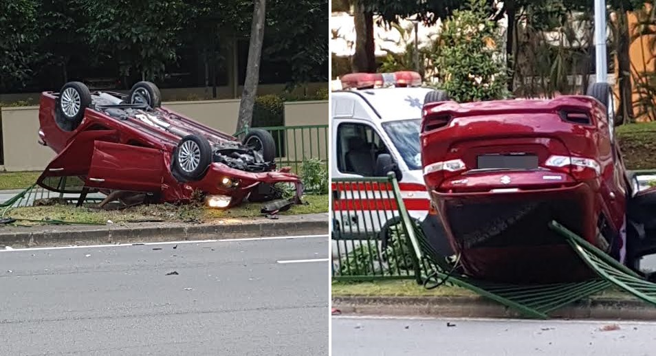 The car flipped and landed on top of a road divider in Buangkok.