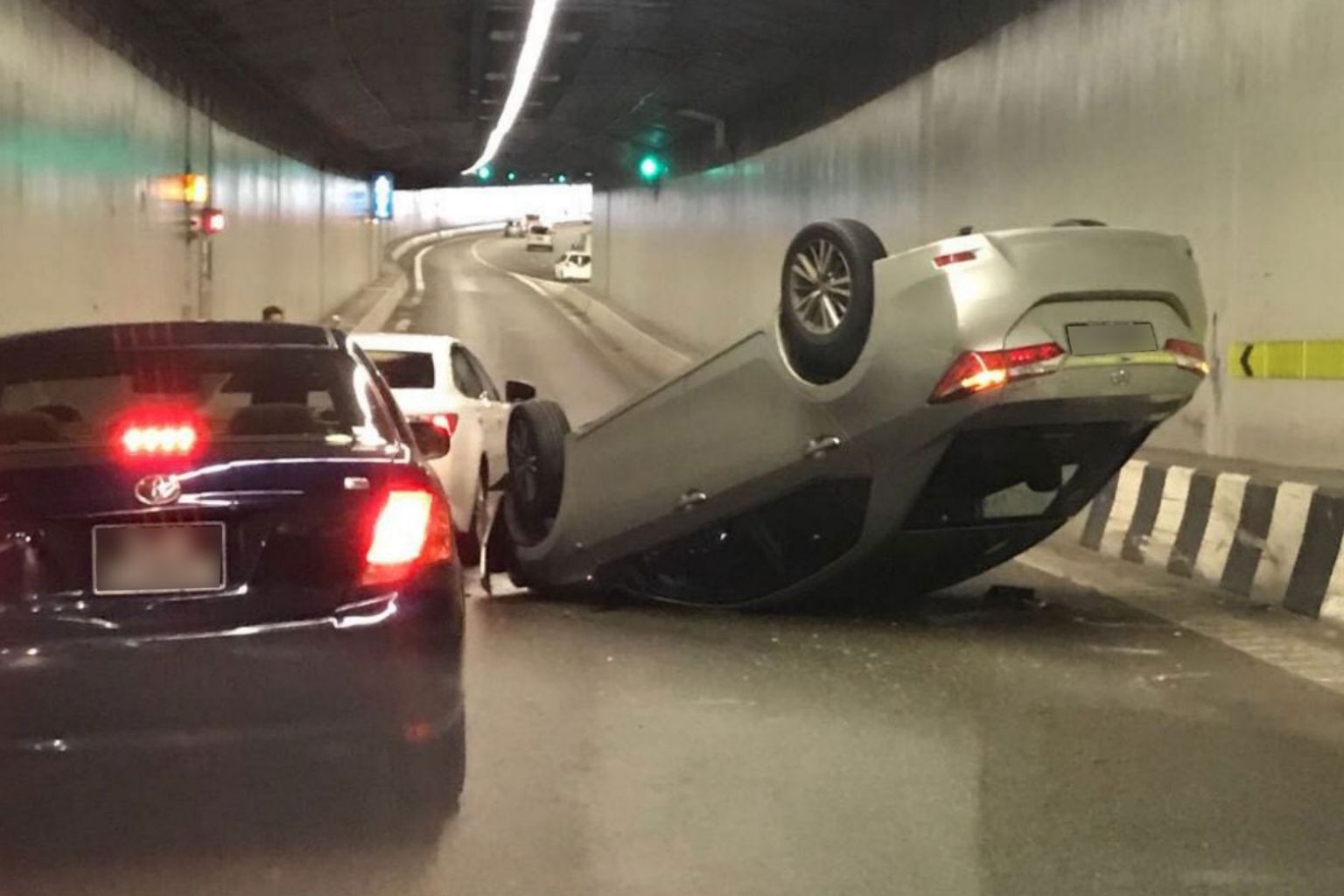 SINGAPORE - A car flipped over in a tunnel on the Central Expressway (CTE) on Friday morning (June 1), with the affected entrance near Merchant Road briefly closed to motorists.