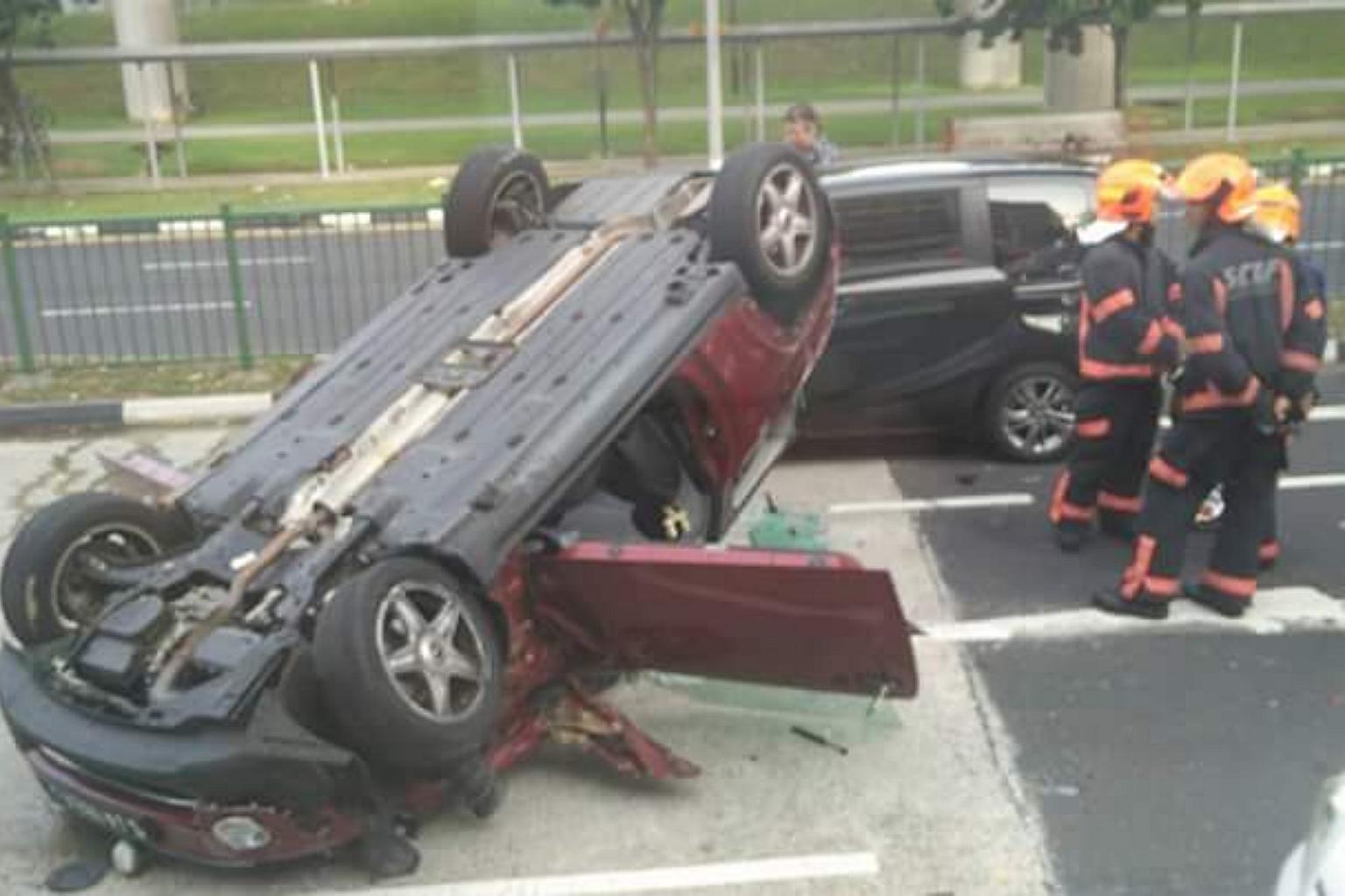Car overturned in three-vehicle crash along Yishun Avenue 2