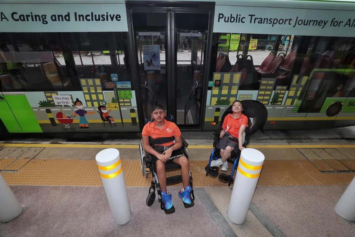 The initiative was launched on Wednesday at Pasir Ris Bus Interchange, with one of the buses on display with the illustration of a bus captain wheeling a student up the vehicle, a commuter grappling with mobility issues and a student from the Cerebral Palsy Alliance Singapore School (CPASS) flashing a helping hand card.