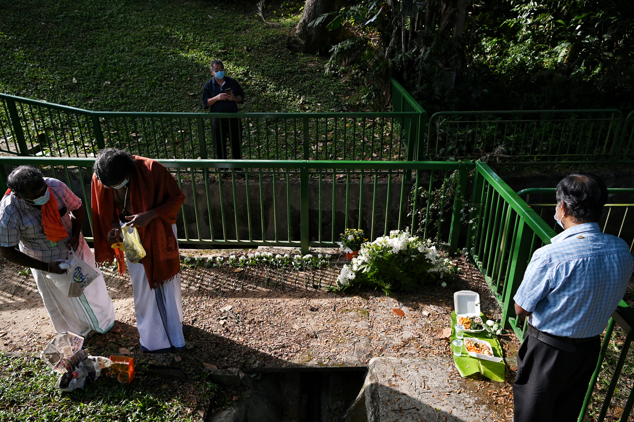 People visiting the canal in Upper Bukit Timah where the twin boys had been found dead, on Jan 23, 2022.