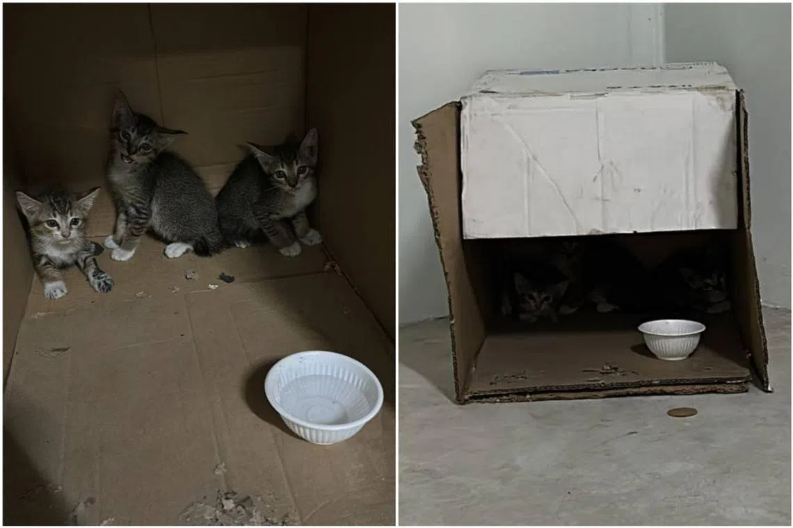 Three kittens found allegedly abandoned in a cardboard box in Yishun Avenue 9 in June 2024. They have since been rescued, with two already rehomed.
