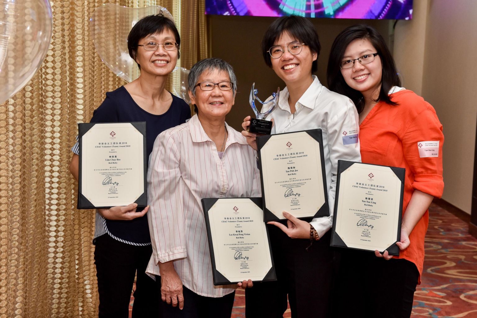 One of the teams receiving the award is Red Ruby, which includes (from left) Lim Chay Bee, 60, Lee Kwai Peng Vivien, 68, Tan Poh Jee and Tan Xue Ling, both 30.