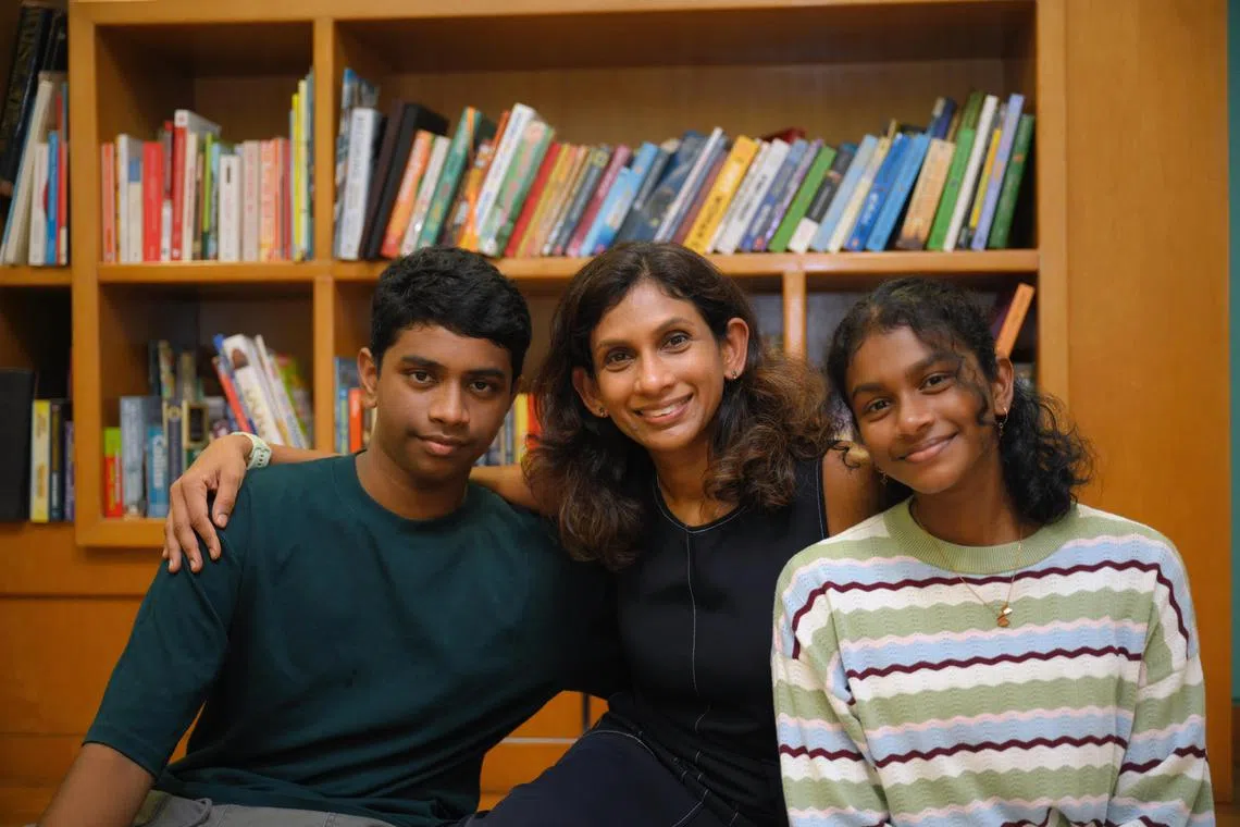 Dr Shalini Arulanandam with her son Akash Sreedharan and daughter Ashmita Sreedharan, both of whom were in the GEP.