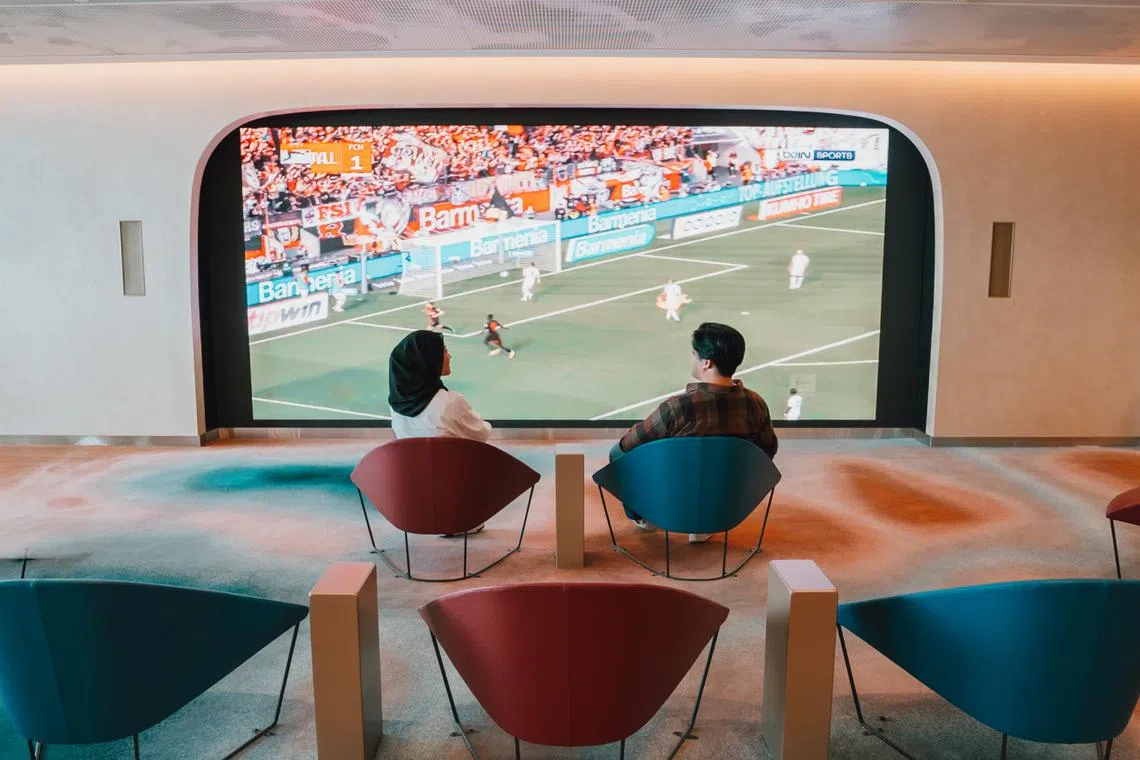The terminal’s transit area has a TV lounge with a large LED screen for passengers to catch sports and live programmes. Charging points are also available here.