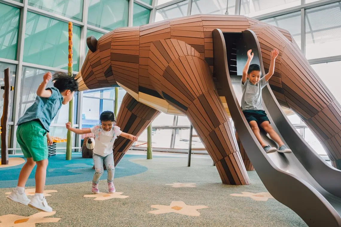 Young travellers can turn wait time into fun time at the 2 Bears Hideout playground.