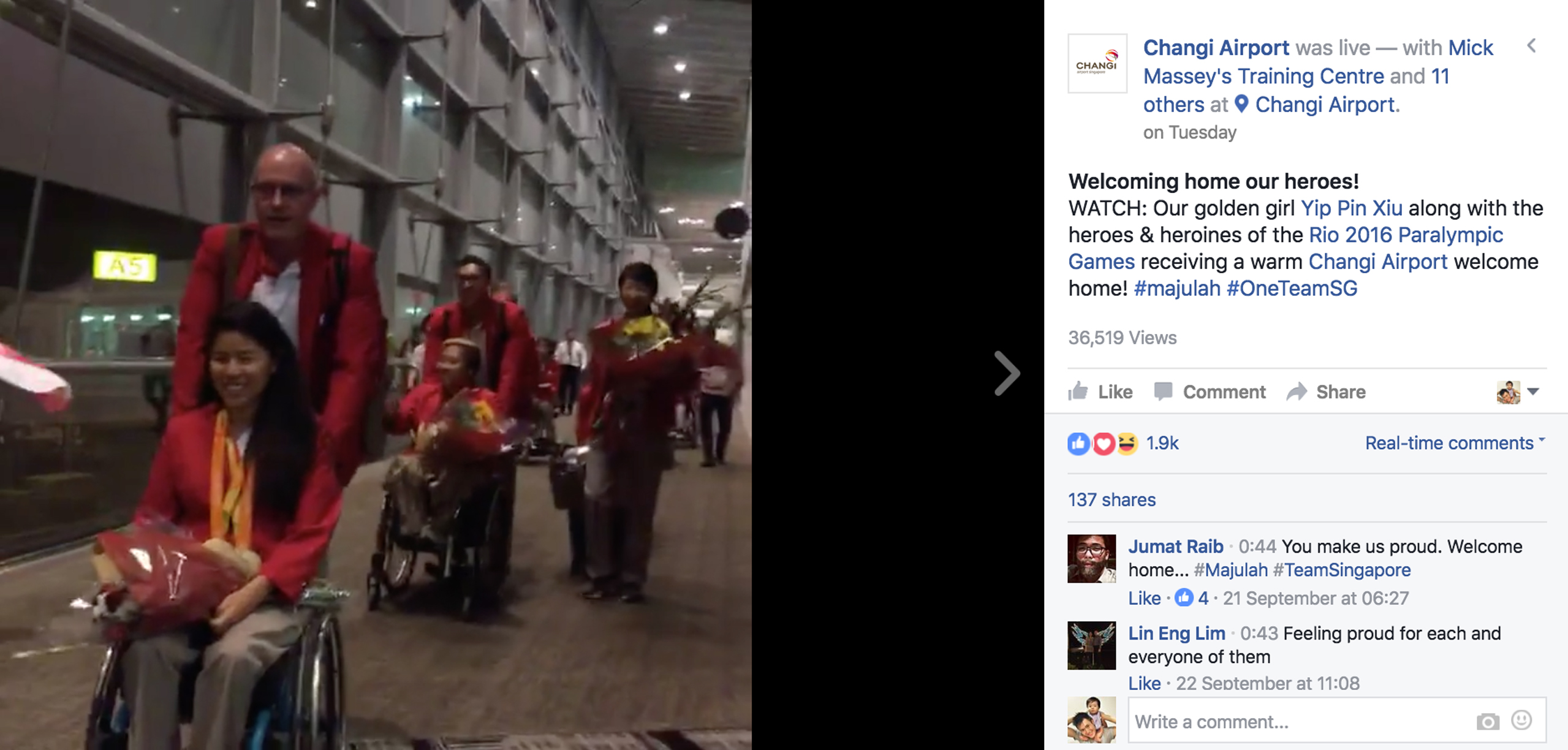 More recently, it also streamed the arrivals of Olympic swimmer Joseph Schooling in August and the national Paralympian team last week.