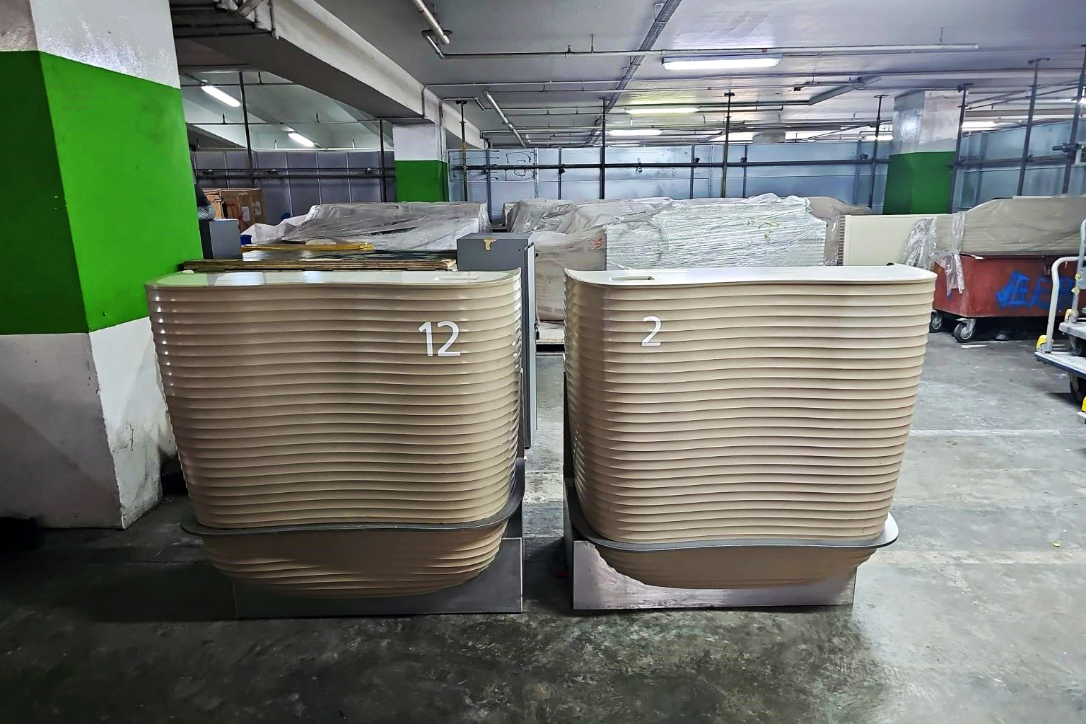 “We even repeatedly rammed a trolley against the metal trolley stopper plate at the bottom of the counter, to make sure that it could withstand such sustained impact and not crack over time,” says Mr Su. These mock-ups helped minimise downstream problems.