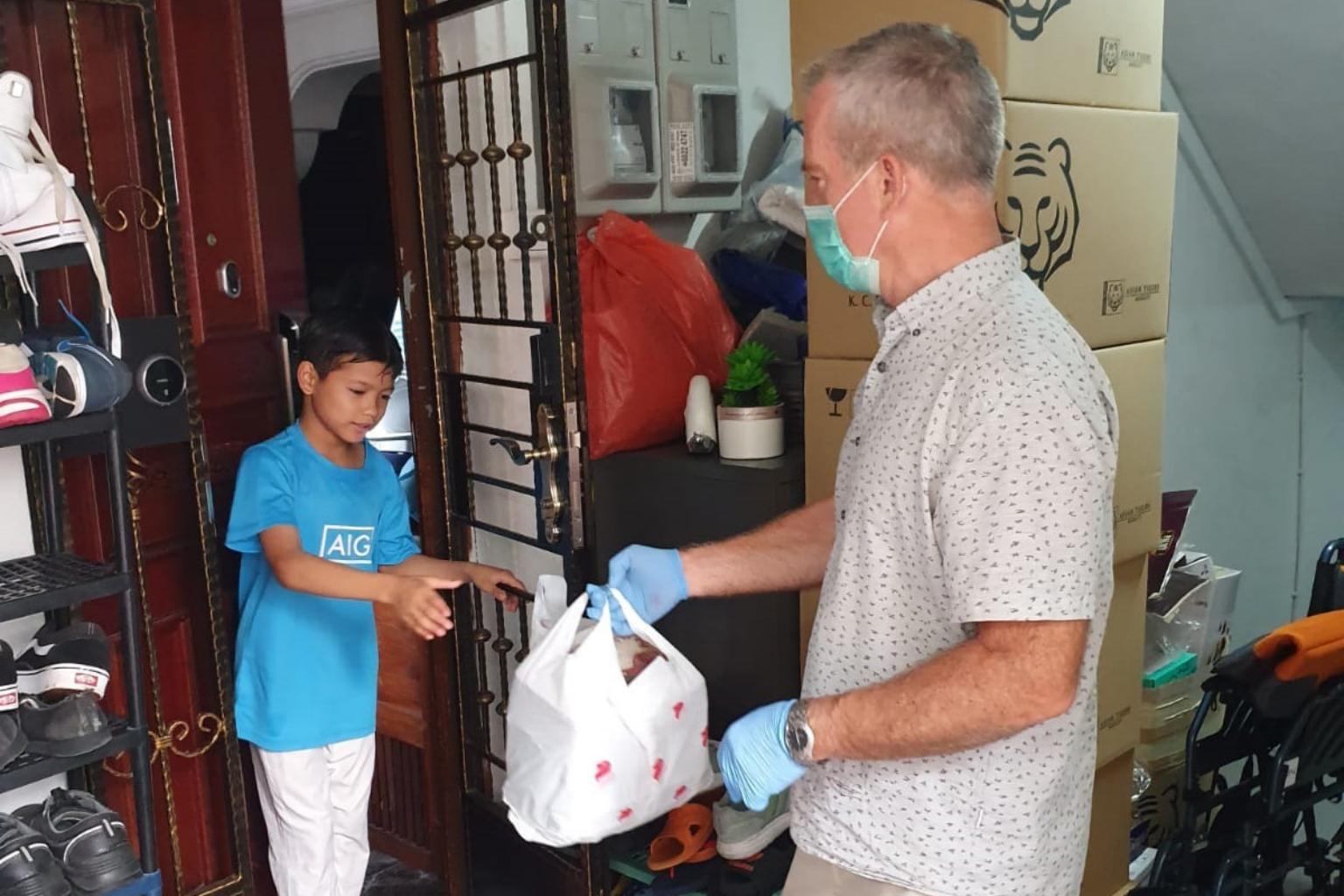 A volunteer from The Food Bank Singapore distributing food under its Feed The City initiative.