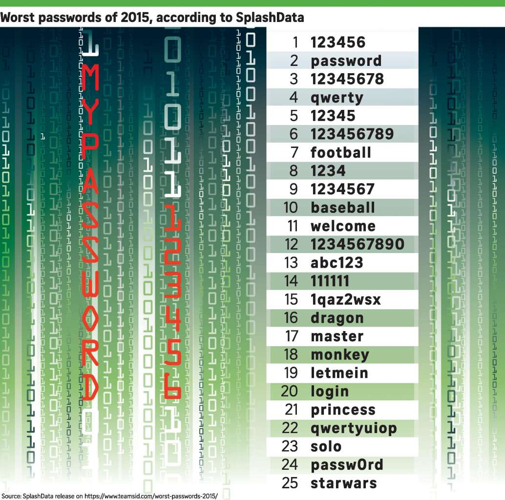 This was published last week by password management firm SplashData, which analysed more than 20 million passwords globally that were leaked over the last year.