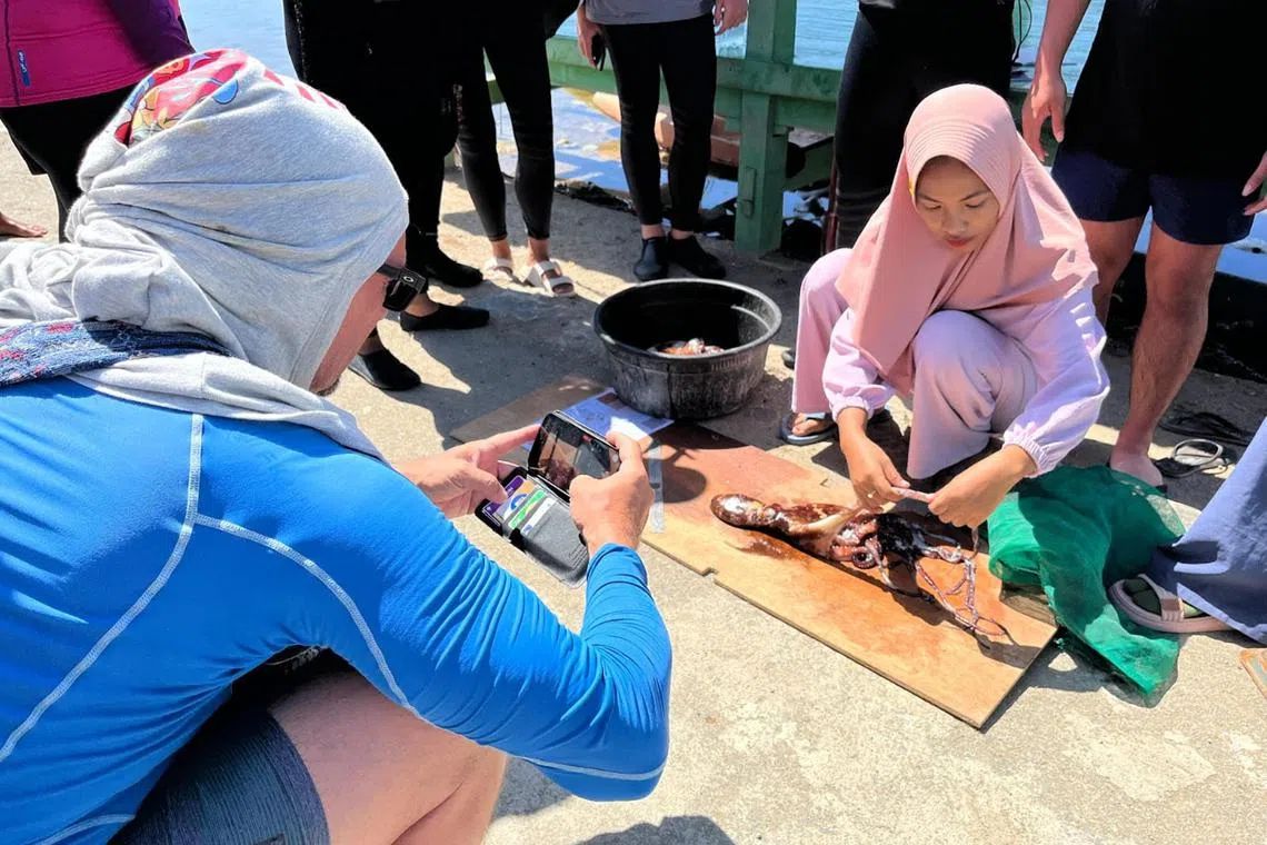 Students from the National University of Singapore on a visit to West Sumbawa in June were shown how to collect data about octopuses such as weight, length of head and sex.
