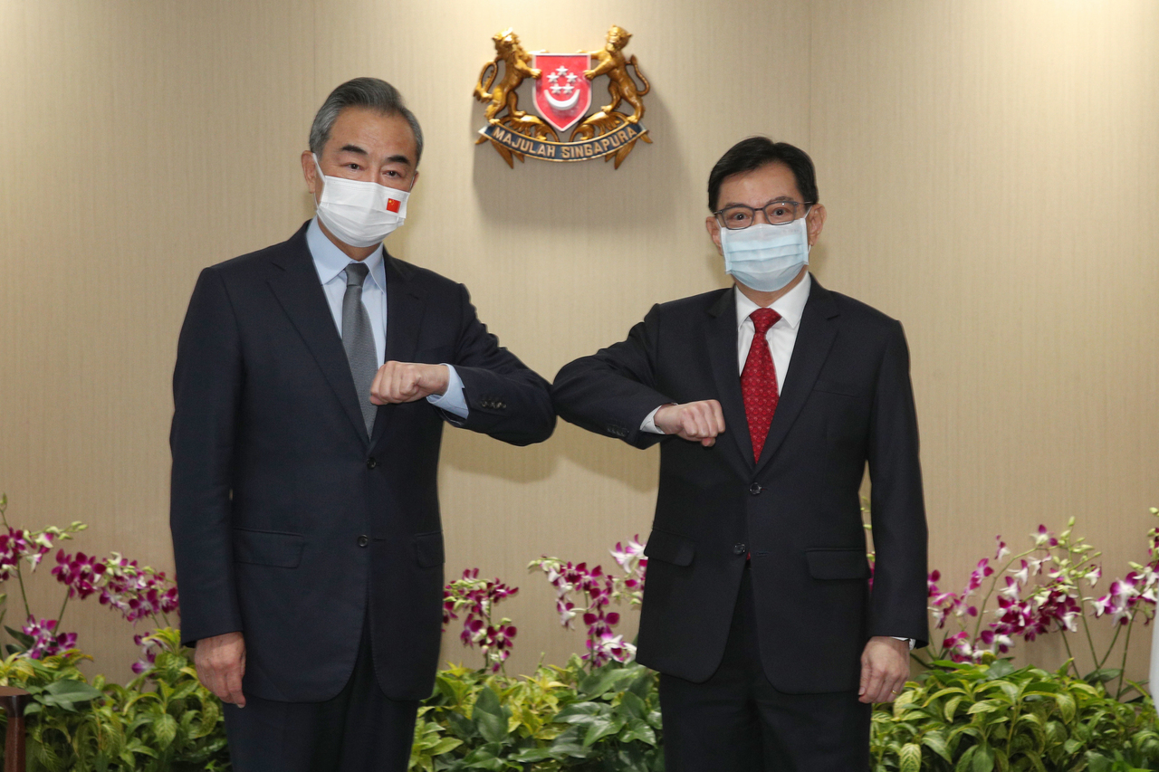SINGAPORE - Chinese Foreign Minister Wang Yi called on Deputy Prime Minister Heng Swee Keat and met Foreign Affairs Minister Vivian Balakrishnan in separate sessions on Monday (Sept 13).