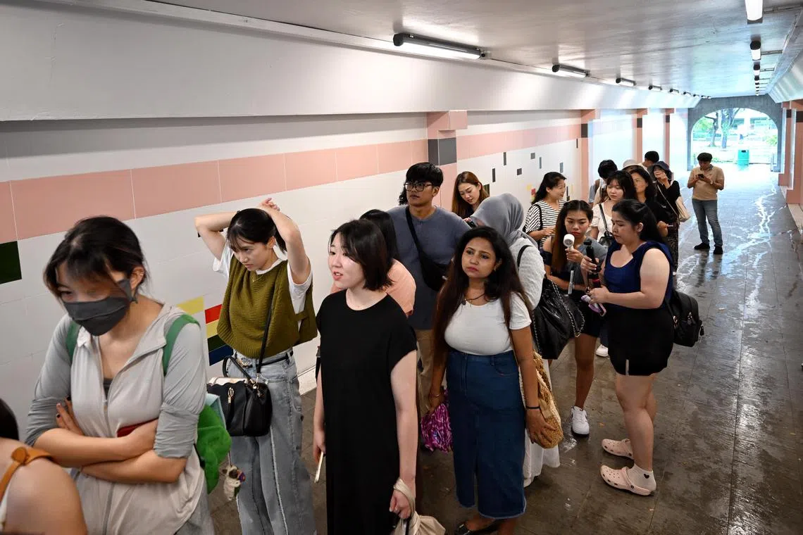 SINGAPORE – A light noon drizzle did not dampen the enthusiasm of over 20 people, mostly tourists from China, who were queueing at the Fort Canning tree tunnel on Oct 17.