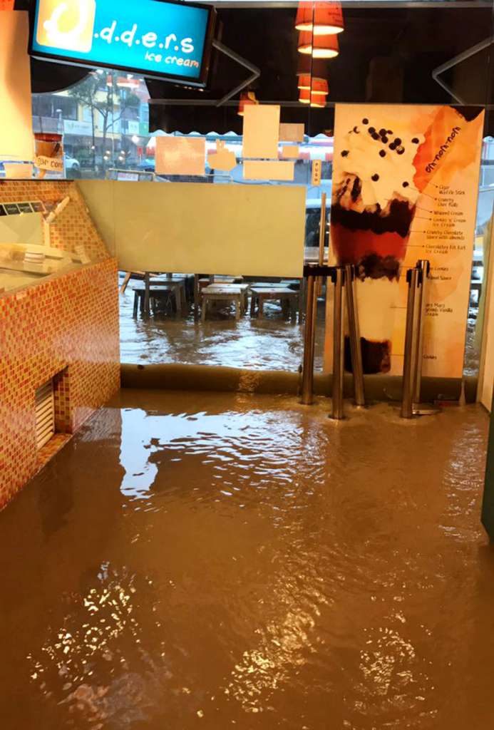 Ice cream shop Udders was one of the shops that flooded along Upper Thomson Road on Dec 24, 2016.