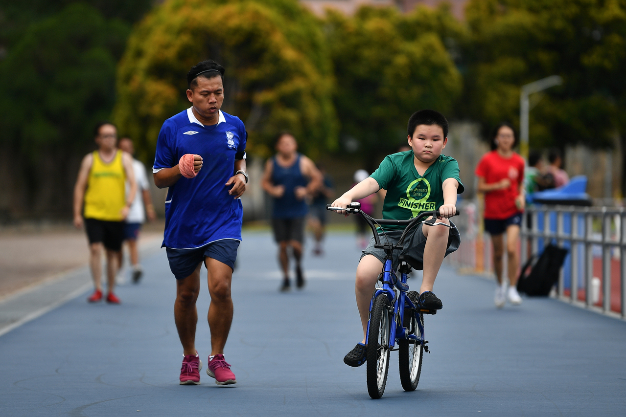 People running and cycling at Jurong West Stadium, on Feb 8, 2020.