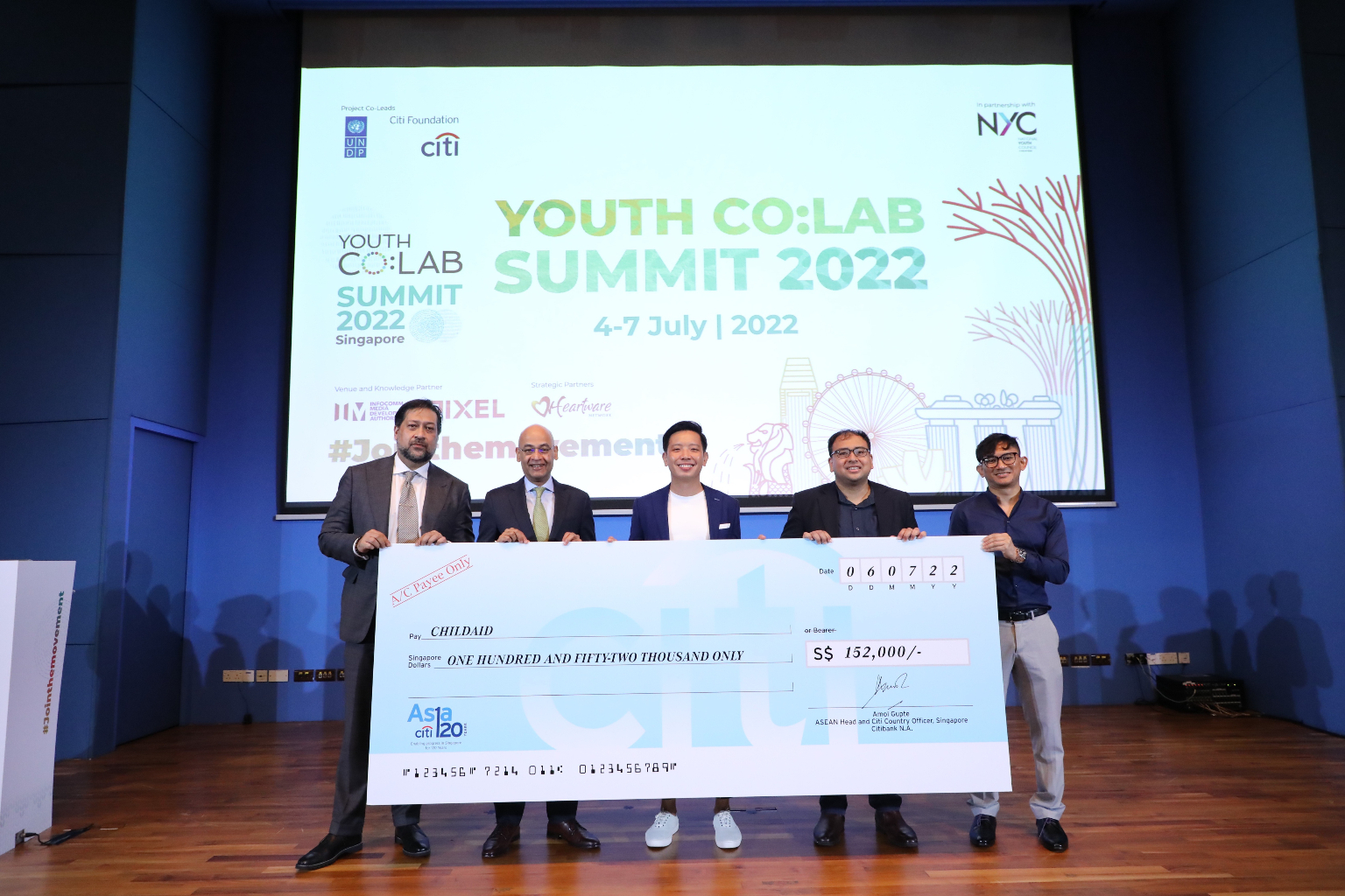 The cheque was presented to ChildAid at the Youth Co:Lab Summit at the Shaw Foundation Alumni House on Wednesday (July 6).