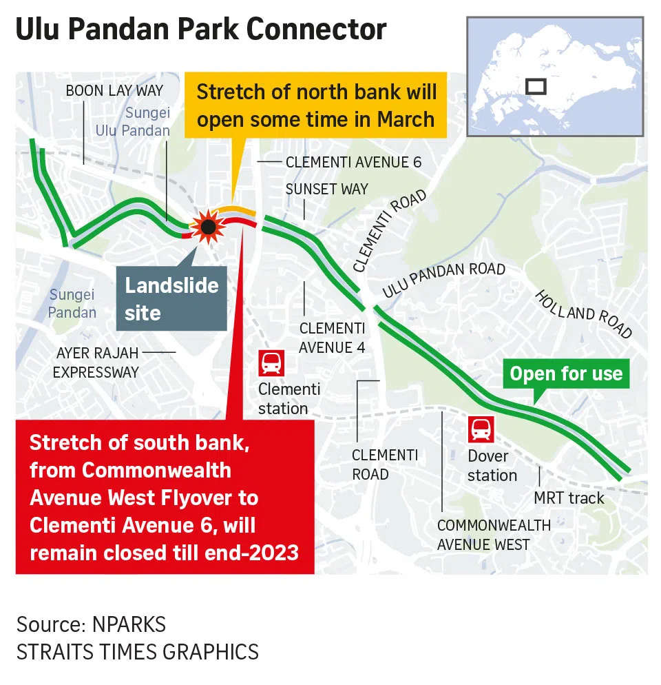 Clementi landslide: 3 sections of park connector open, one stretch to stay closed till end-2023
