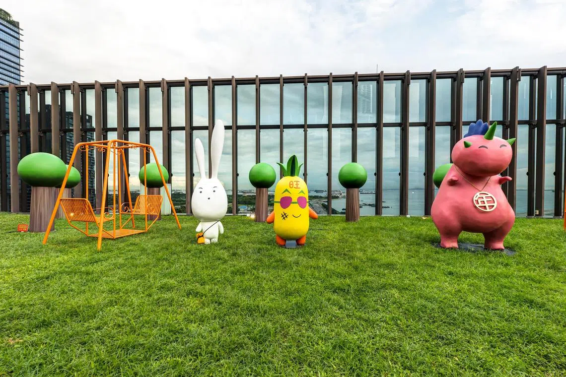 At the Singapore Chinese Cultural Centre (SCCC) at 1 Straits Boulevard, art installation (Tu)gether, at the roof garden, highlights Chinese New Year practices in Singapore using characters from Chinese mythology – Tu Zai (rabbit), Nian Mei (Chinese New Year dragon) and Ong Lai (pineapple).