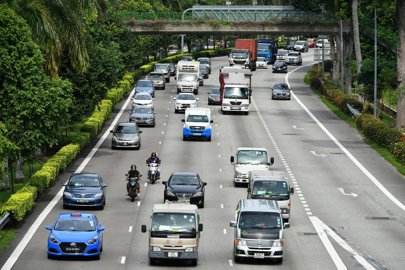 Vehicles on AYE near Clementi Sports Hall.