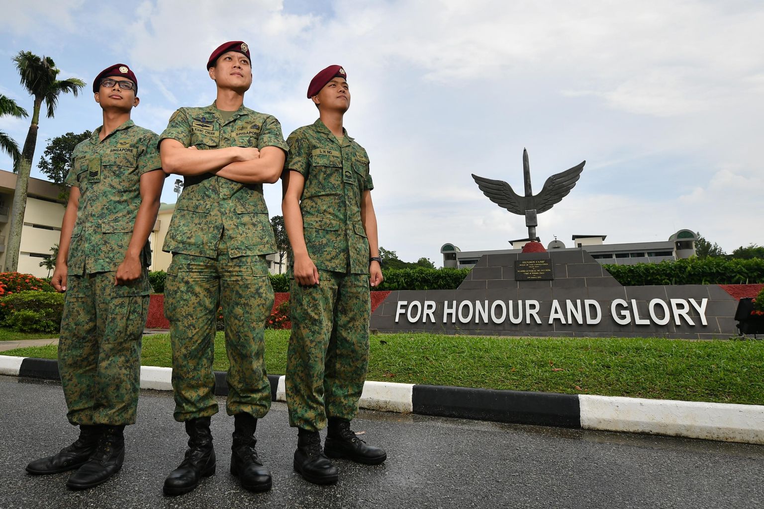(From left) Third Sergeant Muhammed Syakir Zainol, Lieutenant-Colonel Ng Kiang Chuan and commando medic, Corporal Joshua Ng, at Hendon Camp, on June 14, 2018.