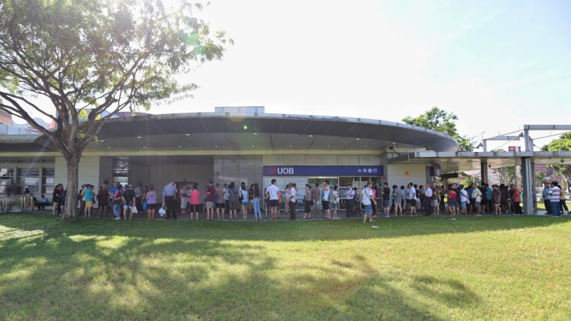 Long queues were seen at many branches across the island from early morning. Five banks told The Straits Times that at least 40 per cent of their stocks had been depleted due to overwhelming demand.
