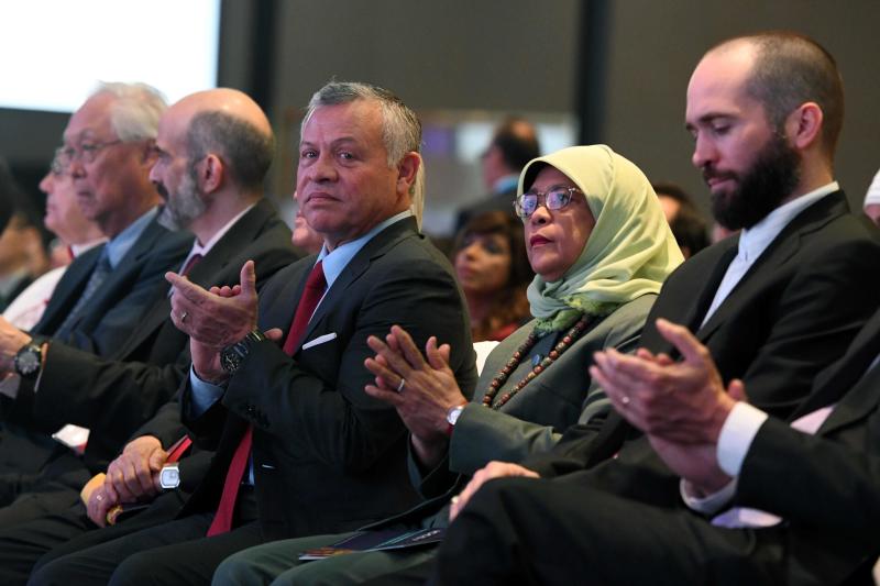 Jordan's King Abdullah (centre) and President Halimah Yacob at the International Conference on Cohesive Societies on June 20, 2019.